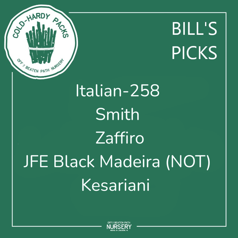 All cuttings contained in the pack are from fig trees that have grown in-ground and unprotected here in Lancaster, PA (Zone 6B) and have fruited fairly well for a number of consecutive years. (Protection would no doubt increase yield substantially, but we have been happy with the dependable volume we get every year.) As a result of in-ground growing, the thickness of the cuttings is much better than container-grown trees – these cuttings are large, heavy and full of energy!